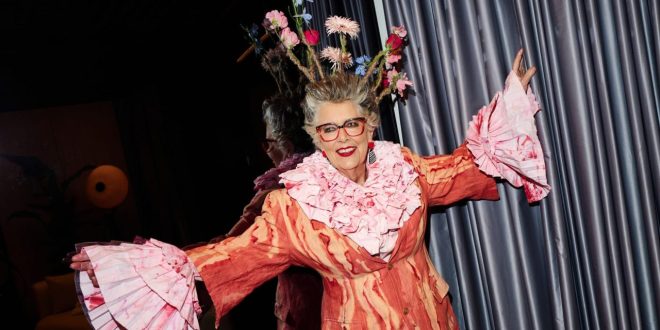 أزهار تنمو داخل شعرها.. شخصية تلفزيونية تفاجئ جمهور أسبوع الموضة في لندن