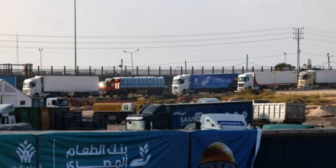 وقال بيان الهلال الأحمر الفلسطيني إن الشاحنات المتجهة إلى غ-زة تحمل “الغذاء والماء والمساعدات الإغاثية والإمدادات الطبية والأدوية”.