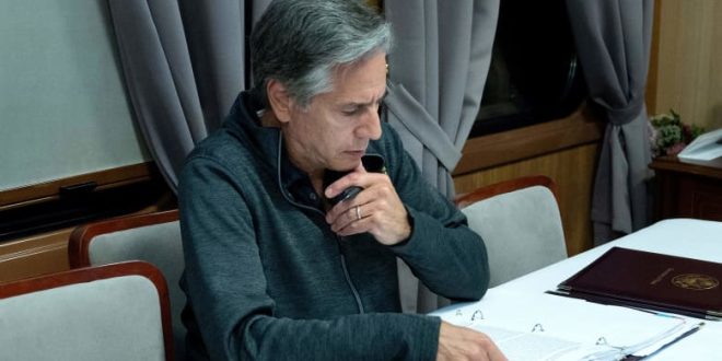وزير الخارجية الأمريكي أنتوني بلينكن موجود في كييف في رحلته الثالثة إلى العاصمة الأوكرانية منذ بدء الغزو الروسي الشامل لأوكرانيا في فبراير/ شباط 2022.