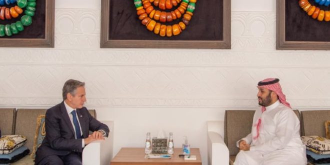 قال وزير الخارجية الأمريكي، أنتوني بلينكن، إن اجتماعه مع ولي العهد السعودي، الأمير محمد بن سلمان كان “مثمرا للغاية”، وذلك في رده على سؤال أحد الصحفيين في الرياض، الأحد.