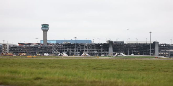 وفي تدوينة على صفحته بمنصة أكس (تويتر سابقا)، قالت إدارة المطار: “لا تزال خدمات الطوارئ في مكان الحادث بعد حريق الليلة الماضية في محطة انتظار السيارات 2”. وذلك بعد إشارته في وقت سابق إلى أن الحريق أدى إلى “انهيار هيكلي جزئي”.