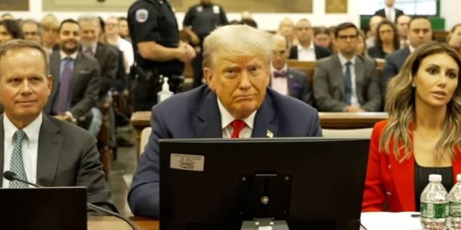 وأكد لارسون أن ترامب “غالبًا ما يميل إلى التحدث مع محامييه على جانبيه، ويحدق باهتمام في شاشة الأدلة الموجودة أمامه” أثناء انعقاد المحاكمة.