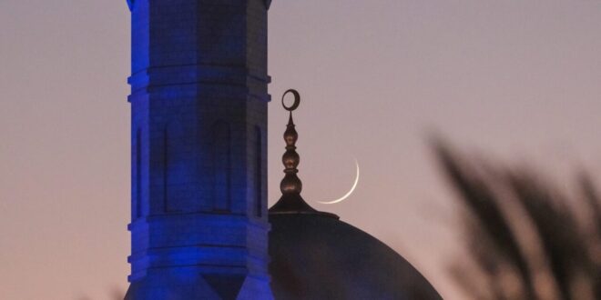 مصور يرصد القمر فوق مآذن المساجد في الإمارات بصور آسرة