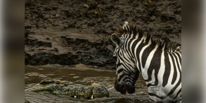 اندفع أحد الحُمُر الوحشية نحو الماء، وفي لحظة قفزه إلى النهر، وجد نفسه على مقربة من تمساح كان يترقب فريسة.