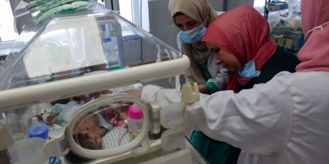 وقال الدكتور محمد سلامة، من مستشفى الإمارات للولادة في رفح : “نجري اختبارات على جميع هؤلاء الأطفال وتم إعطاؤهم السوائل والأدوية اللازمة حسب حالتهم، وفي الوقت الحالي، هم في حالة صعبة ومستقرة، ولكن هذا الوضع قد يتدهور، خاصة وأن الكهرباء قد تنفد منا في أي وقت الآن طالما أن الوقود لا يصل إلى غ-ز ة”.