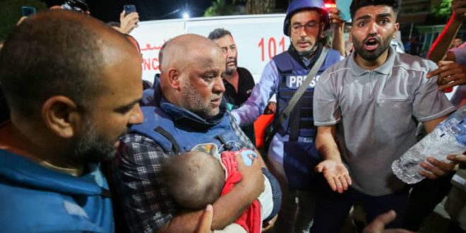 وقال الدحدوح: “هذا ربما من الواجب أن نكون في هذه اللحظات وهذه الساعات التاريخية إن صح التعبير والاستثنائية ولذلك ما من مفر إلا استمرار القيام بالواجب وحمل هذه الرسالة والقيام بالتغطية بكل مهنية وشفافية رغم كل شيء”.