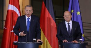 تداول نشطاء على مواقع التواصل الاجتماعي مقاطع فيديو من المؤتمر الصحفي الذي عقده الرئيس التركي، رجب طيب أردوغان مع المستشار الألماني، أولاف شولتس من برلين، الجمعة. وقال أردوغان وفقا لما نقلته وكالة أنباء الأناضول التركية الرسمية: “إسر-ائيل قتلت حتى الآن 13 ألف فلس-طيني، أغلبهم أطفال ونساء ومسنون، ودمرت كل شيء …